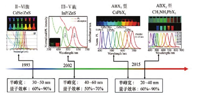 量子点显示是利用发光量子点材料的一种显示技术,,,改变量子点尺寸就能实现色彩的调控,,,具有高亮度、、较大色域、、、、高对比度、、低功耗的优点。。。。根据发光形式的不同,,,量子点显示可分为光致发光和电致发光。。光致发光量子点显示可与现有液晶电视工艺结合提高画质,,,,电致发光量子点显示可实现自主发光显示,,,但是较为成熟的技术路线基于含镉量子点材料,,有毒性,,欧盟等国家已禁止销售,,,,应着力探索无毒电致发光 QLED显示在中小尺寸、、、、短使用期等市场应用。。。图4为量子点显示材料种类。。。。
